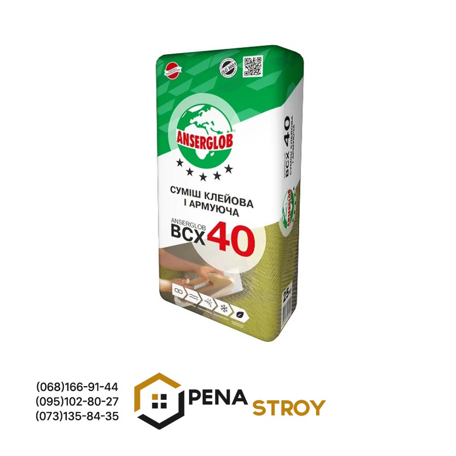 Смесь клеевая и армирующая ANSERGLOB ВСХ 40 предназначена для устройства гидрозащитного слоя, а также для приклеивания пенополистирола и жестких минераловатных плит на поверхности из бетона, кирпича, пенобетона, цементно-песчаной, цементно-известковой, гипсовой штукатурки и другие минеральные основания. Клеевую смесь можно использовать внутри и снаружи зданий в производственных и жилых помещениях. Гидрозащитный слой может служить основой под отделку финишными декоративными штукатурками и шпаклевками ANSERGLOB.