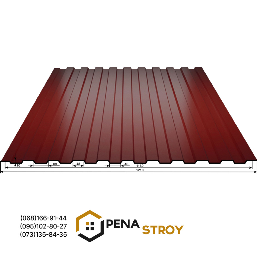 Профнастил ПС-8 стеновой Вишневый RAL3005п.1700*960мм (толщ.0.30) 2.08м2 Китай